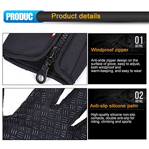 Winter Touch Screen Windproof Waterproof Thermal Gloves for Men Women Camping Cycling Outdoor (Black, XL)