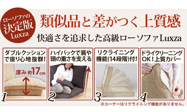 ※メーカー直送のため代金引換はお受けできません。※沖縄・一部離島は別途送料がかかります。お見積もりいたしますのでお問い合わせ下さい。【コーナー・単品】ハイバックのコーナーローソファ。ふっくらボリュームのあるダブルクッションは抜群の座り心地☆大手自動車会社にもパーツを提供している老舗の科学メーカーが「楽な座り姿勢」のノウハウを活かしてつくりました。上質で丈夫なカバーは立体的な織目。座面、背もたれ、腰当てクッションのカバーは外してドライクリーニングが可能なので、清潔に保てます。クッション1個付きサイズ(cm):幅83x奥行83x高さ67cm・約11kgカラー:ブラウン・ベージュ材質:張地-ポリエステル70%・綿27%・レーヨン3%、クッション材-ウレタンフォーム、フレーム-スチール完成品メーカー:株式会社ナカムラ(t0800003)