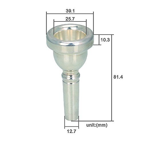 Studio : etfshop Publisher : etfshop Product Description Note: There is a little difference between the color and object Features: Made of copper alloy and silver plated This Trombone mouthpiece darkens the sound, produces a rich tone. Best gift for your friends It is computer-aided design system and computer controlled lathe work together to produce the most precise mouthpieces Speifications: Brand name:Yibuy Material:Copper alloy and silver plated Color:Silver Length:82mm/3.22"" End outer diameter:37mm/1.45"" Connector outer diameter:12.7mm/0.5"" Weight:178.5g Package Content: 1 x Trombone mouthpiece Each item is qualify checked with a unique Manufacturing Part Number lable on the inner package,in order to confirm if it is authentic item sold by our store. Anything question,please contact and send us the MPN lable information 0