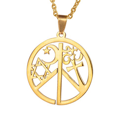-. Title : Floating Charm Memory Jewelry Round Locket Pendant Necklace with Crucifix,Peace Symbol,Gold Plated