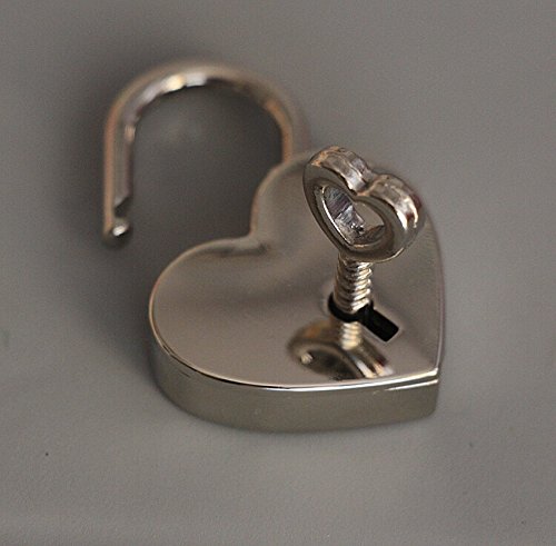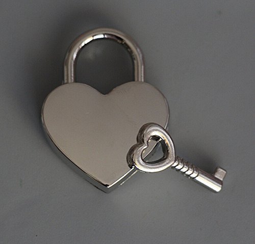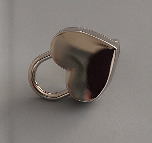 BeeSpring 1 Pieces Height Polished Heart Shaped Padlock & Skeleton Key ,REPLACEMENT HANDBAG BAG , Wedding Bow Lock ~ Silver Color