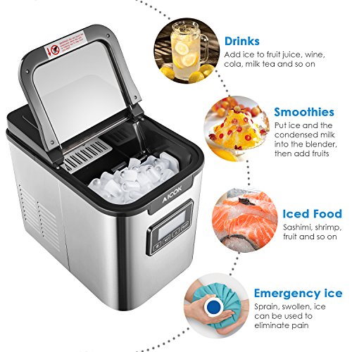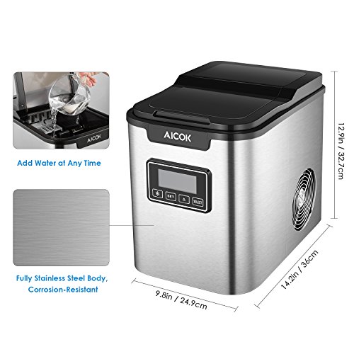 Aicok Ice Maker, Counter Top Ice Maker Machine, Portable, Stainless Steel, 2 Quart Water Tank, Get Ice in as quick as 10 Minutes, Express Machine Can Make Over 26 lbs