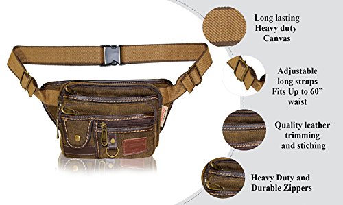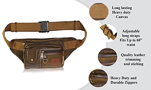 Army,Military Canvas Fanny Pack Heavy Duty 5 XL Waist Hip Bag Travel Bag