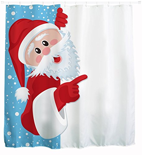 Goodbath Christmas Winter Santa Claus Shower Curtain, Fabric Bathroom Decor Waterproof Bath Curtains, 72 x 72 Inch, White Red and Blue (Santa Claus)