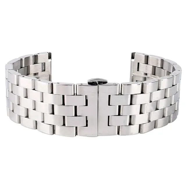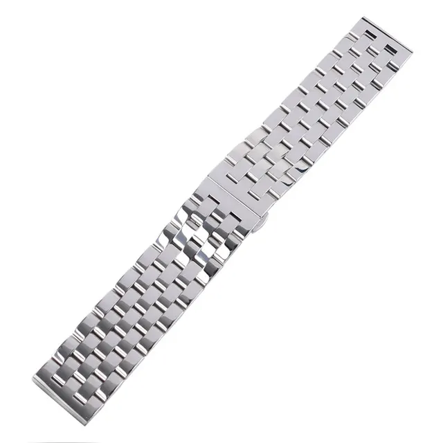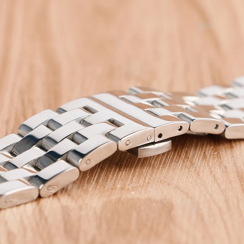 24/26 미리메터 팔찌 실버 스테인레스 스틸 남성 솔리드 링크 푸시 버튼 배포 버클 시계 밴드 스트랩 럭셔리