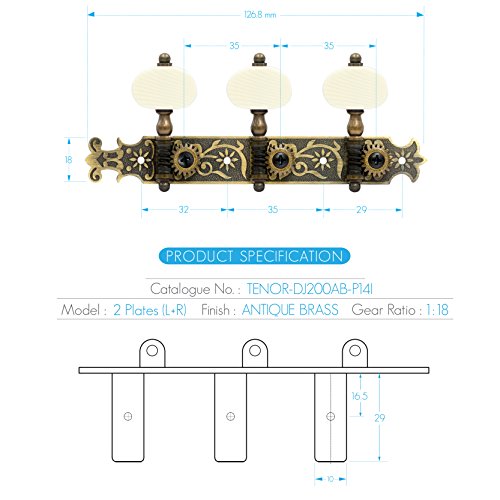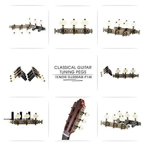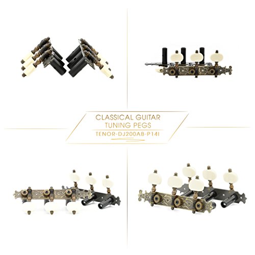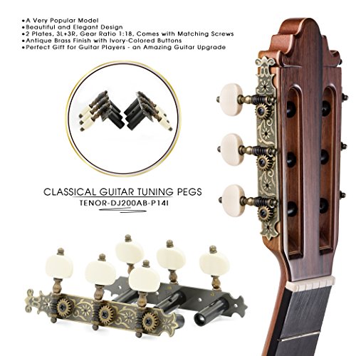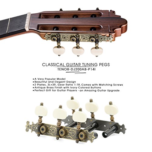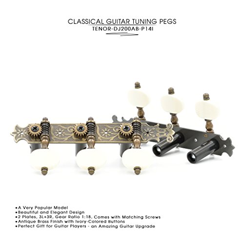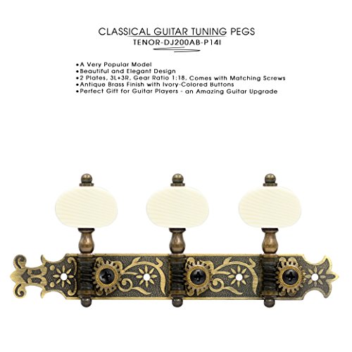 DJ200AB-P14I TENOR Classical Guitar Tuners Professional Tuning Key Pegs/Machine Heads for Classical or Flamenco Guitar with Antique Brass Finish and Ivory Colored Buttons.