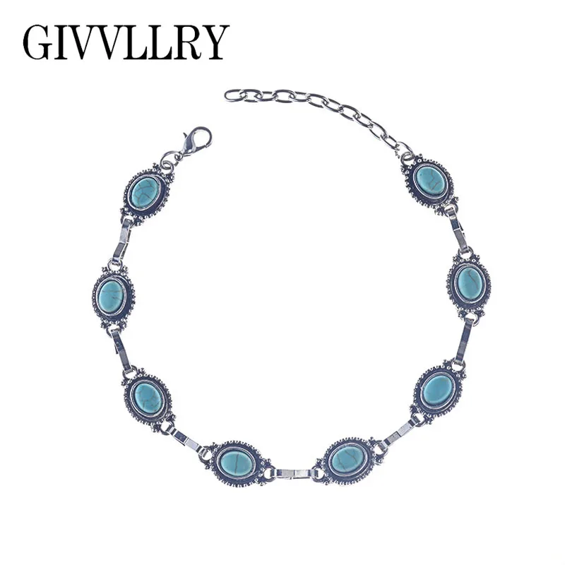 Fashion:Gypsy Blue Stone Ankle Bracelet