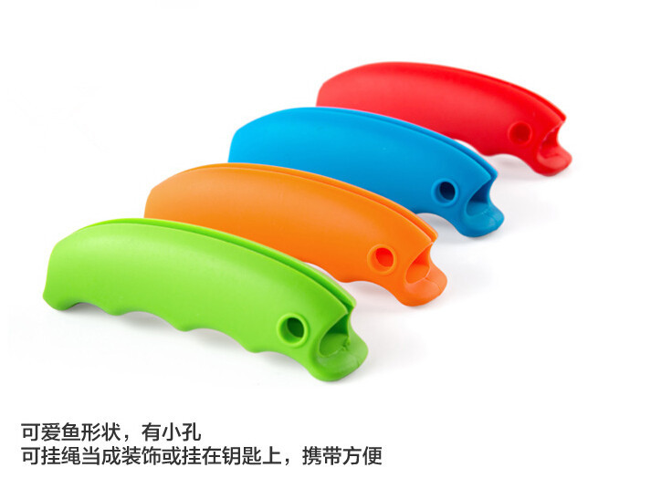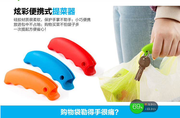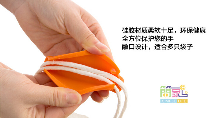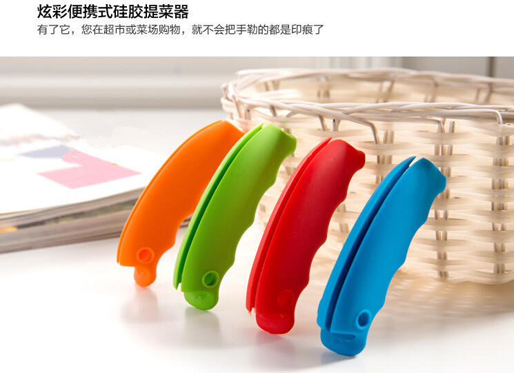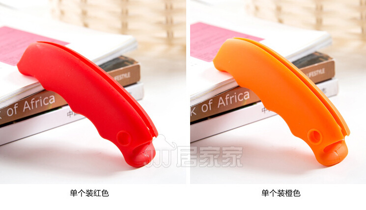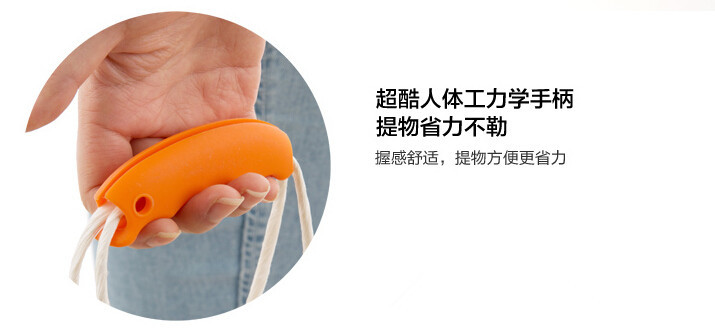 Material: environmentally friendly silicone ,, texture soft, tear-resistant, feel good. Size: 9.2x2.3x2.5cm Net weight: 20g Colors: yellow, orange, red, light green, blue, brown and black. Packaging: a single opp bags, 500pcs a box. Logo: can be customized. Role: 1. Can mention paper bags. 2. Can plastic bags. 3. Fixed plastic bags, to avoid falling off. 4. Pressure relief structure and has a slip function. 5. Auxiliary bag to extract heavy objects, the distribution of the average force, can effectively reduce the hand pain