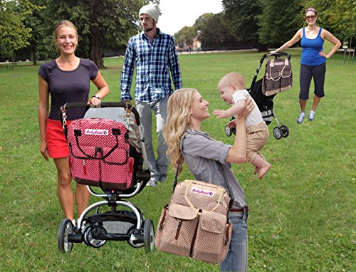 With this huggyhug mommy bag eliminates the hassle and discomfort by not finding the warm bottle or diaper changing mat, baby wipe or pacifier, camera or purse, keys and amenities, when you want it, make your walk, hike or shopping spree with ease and peace of mind, knowing that everything you need is well organized, huggyhug mommy bag is master-crafted by the makers of bodybudd products with our customers in mind, we bring comfort to mom she deserves! there are numerous interior pockets to keep it all organized, an additional exterior pocket insulated to keep bottles to temperature desired, also comes with a removable and adjustable strap with well-padded to keep you comfortable, love your hike, leisure walk and shopping spree like never before with style and fashion! Huggyhug is here with another quality product brought to you by sport up USA.Feature