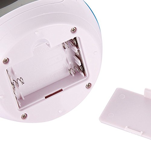 This Alarm Clock is an unique night light projector lamp Music with sky star colorful changing light , It is a great gift for your family(especially the kids), lover and friends Product Description And Feature: Stylish angular design Unique clear LCD Display ,easy to read numbers Support Time,Date, Calendar, Temperature Time display: 12-hour or 24-hour mode Can be placed in the car, office, home 2 Thermometer Types:Centigrade temperature and Fahrenheit temperature (0°C-50°C, 32°F-122°F) Chord music / nature sound alarm (several music to select). Nature Sound several Colors Changing Light Alarm Clock. Dynamic projection of colored starry sky accompanied with music rhythms. Function of backlight,snooze(snooze interval adjustable 1 min~60 mins), timed music appreciation and countdown (timing from 00: 00: 00-23: 59: 59 hours). But can not adjust the volume Low power consumption, environmental friendly. A great gift for your family(especially the kids), lover and friends Product Specification: 1 Item type: Alarm Clock, Night light 2 Display Type: Digital 3 Light Source: LED Bulbs 4 Sound: Loud 5 Power supply: 3 * AAA batteries(not include battery) 6 Power source: Dry Battery 7 Voltage:24V 8 Wattage: 6-10W 9 Weight: about 175g 10 Dimensions: about 10.4×10.2×8.2cm Package Contents: 1 X LED alarm clock (not including battery)Feature