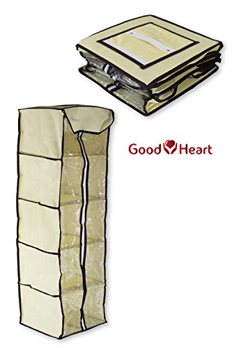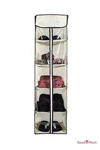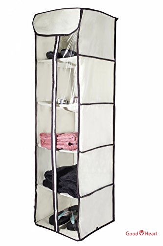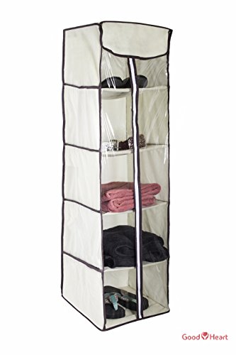 5-Shelves Hanging Closet Organizer – Collapsible Hanging Accessory Shelves Organizer for Clothes Sweater Accessories Storage – Beige / Off White