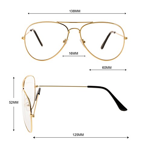 Forepin Jahrgang Pilotflieger Brille Pilot Metallrahmen Sonnenbrille Klare Linse Glaser