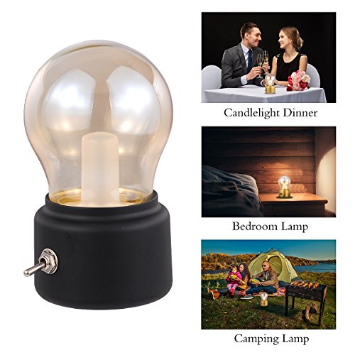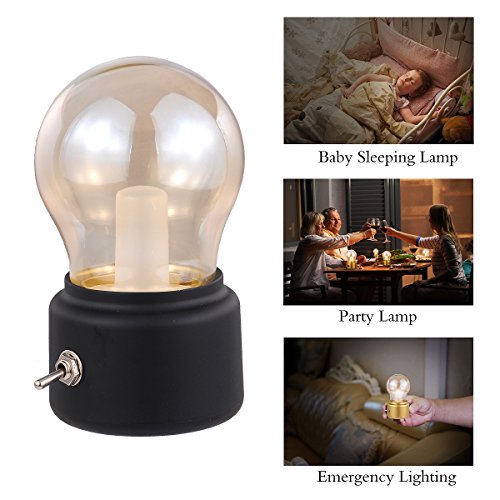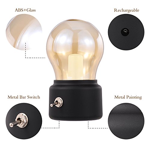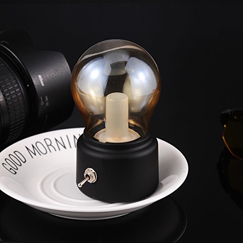 Rechargeable LED Night Light, Black, Retro Style, Bubl, Lamps for Bedrooms, Baby, Candlelight Dinner, Camping, Party, Emergency Lighting