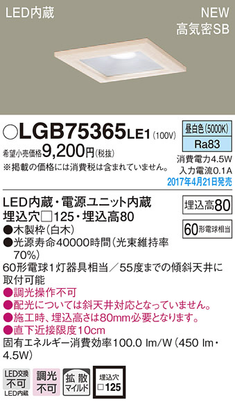 ●寸法(mm):埋込穴□125・埋込高80