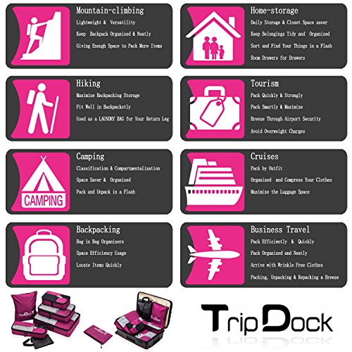 Perfect fit: 6 piece set really ultimate packing system for all types of travel, they fit perfectly into most airline carry on suitcases, luggage, backpacks, tote, weekender and duffel bags, great for holidaymakers, backpackers,businessmen, traveler, householder, family/couple long-term travel, weekender trip,camping, hiking or outdoor sports packing - Valuable Packing Cube Organizer