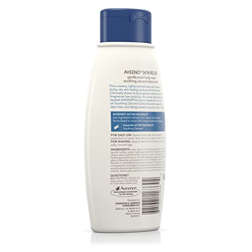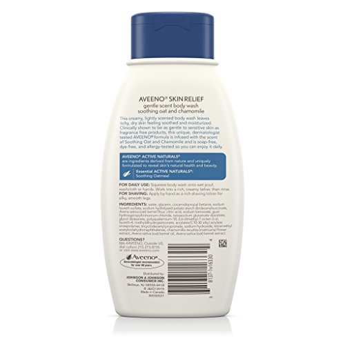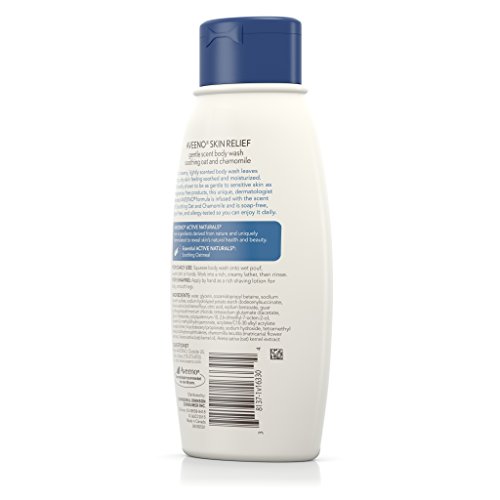 Gently cleanse your itchy, dry skin with Aveeno Skin Relief Gentle Scent Body Wash. Infused with a Soothing Oat and Chamomile scent, this breakthrough body wash is specially formulated to soothe and leaves skin feeling moisturized. Professionally tested, this ultra nourishing body wash designed for sensitive skin is clinically proven to be As Gentle As Fragrance Free on sensitive skin. Our unique blend of rich emollients with new Natrasurf mild cleansing technology and Active Naturals soothing oatmeal deliver a gentle clean leaving skin feeling fresh and smooth.Feature
