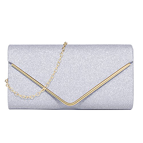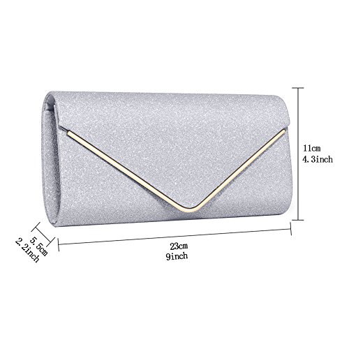Elegant large envelope style metallic glitter clutch evening bag