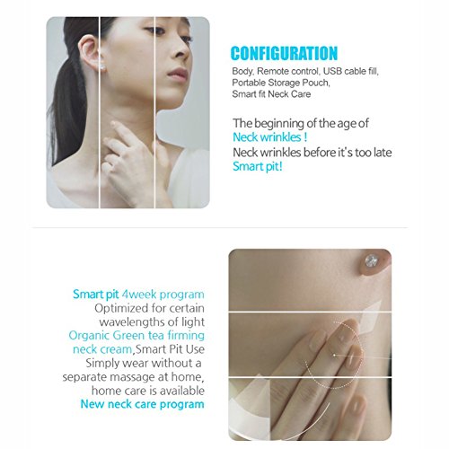 New concept personal beauty device for Neck wrinkle care, differently from other beauty devices only for face, by combining LED (Near infrared ray/ Light Emitting Diode) and Micro vibration technology having proven safety and efficacy. SMARTfiT is a personal beauty device to treat the neck wrinkles at home which are difficult to deal with even by the dermatologist. If you use SMARTfiT together with Oganic Green Tea Solution Firming Neck Cream, more excellent effect is expected than the cases using only wrinkle care cosmetics or only beauty device.