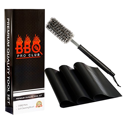 - SAVE TIME AND EFFORT: No more struggling to scrape off burnt food! The top notch BBQ cleaning brush has a long ergonomic handle for a sure comfortable grip as the stainless steel bristles work easily to remove debris without scratching or damaging your grill. But the large fire resistant mats should already preclude the need for any kind of a scraper by serving as a liner for your food – making all this the ultimate must-have gear for today's barbeque enthusiasts!