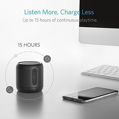 -. Feature : The Anker Advantage: Join the 20 million+ powered by our leading technology. / Compact And Powerful: Super-portable Bluetooth speaker delivers powerful sound and robust bass through a 5W audio driver and passive subwoofer. / Unstoppable Music: Bluetooth, micro SD support, AUX and FM radio support for endless audio options. / Extended Playtime: Anker battery technology supplies 15 hours of continuous playtime on a single charge; more than double what comparable speakers offer. / What You Get: Anker SoundCore mini, Micro USB charging cable, welcome guide, our worry-free 18-month warranty and friendly customer service.