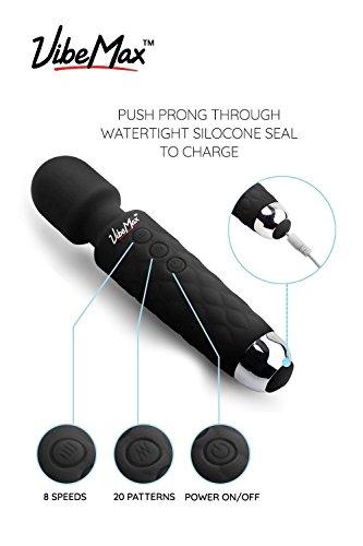 The VibeMax cordless rechargeable handheld personal wand massager puts big power in a compact, beautiful package that makes large, bulky wands a thing of the past. The silky smooth silicone skin glides over your body to soothe tired muscles and increase circulation. It works great for back, shoulder or neck pain and is well suited for sports recovery and muscle aches in general. With its whisper quiet motor you can use the VibeMax massager wand anytime, day or night without worrying about loud, disturbing noises.