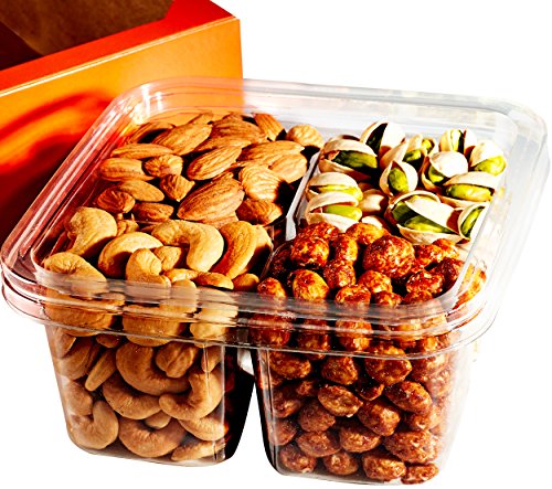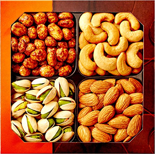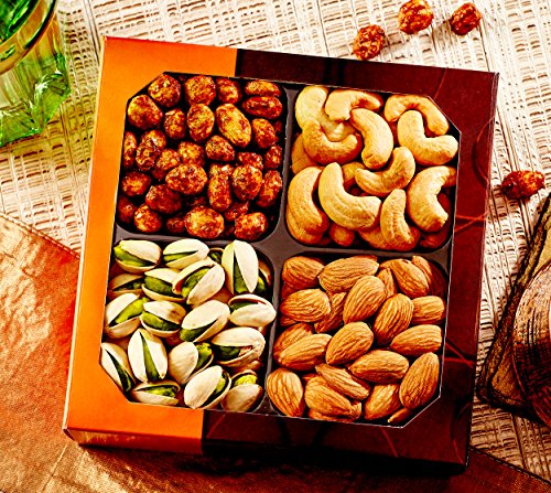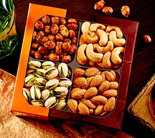 - ✔ 4 DIFFERENT HIGH-QUALITY NUTS -Our heart healthy gift basket has all the delicious and healthy nuts: Roasted Salted Pistachios, Cashews, Almonds & Sugar-Glazed Peanuts! Best on Amazon.