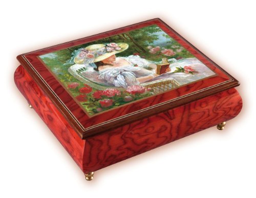 Ercolano "Morning Sunshine" 18 Note tune Wooden Box with Image, 7.25 by 6 by 2.75-Inch, Red Glossy Finish