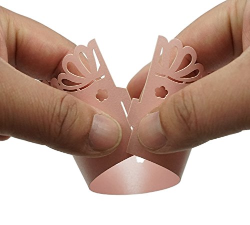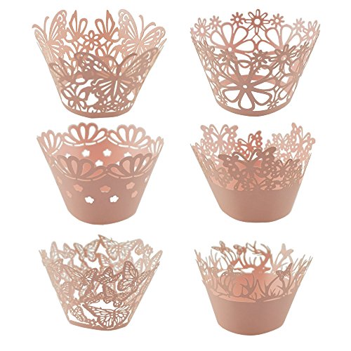 Bilipala Pink Butterfly and Flower Lace Cupcake Wrappers Liners, Pack of 60