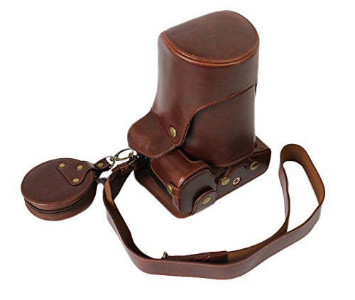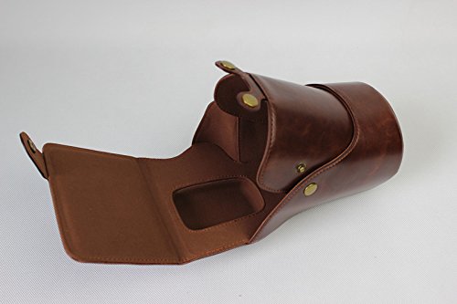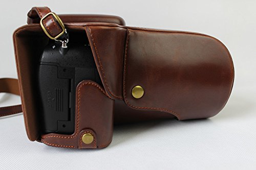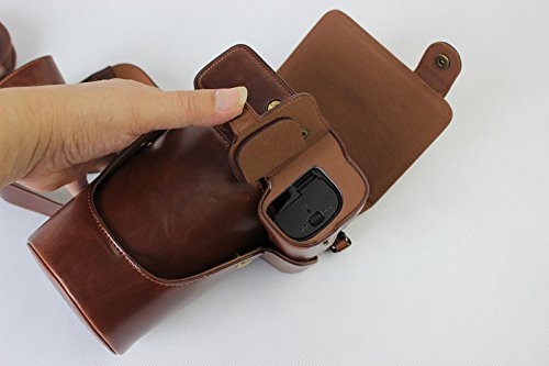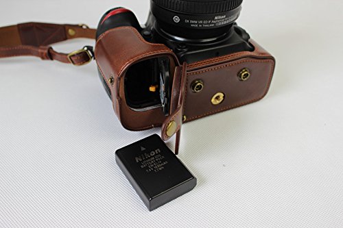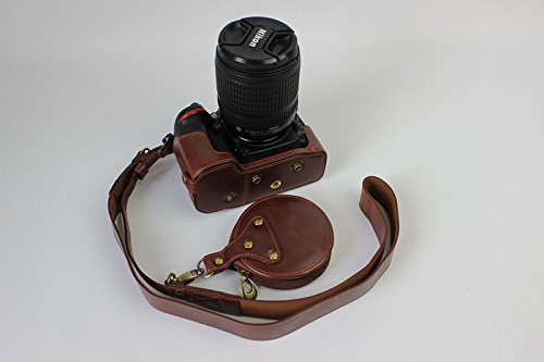 Full Protection Bottom Opening Version Protective PU Leather Camera Case Bag with Tripod Design Compatible For Nikon D5500 with 18 - 105mm Lens with Strap &Storage Card Case Dark Brown