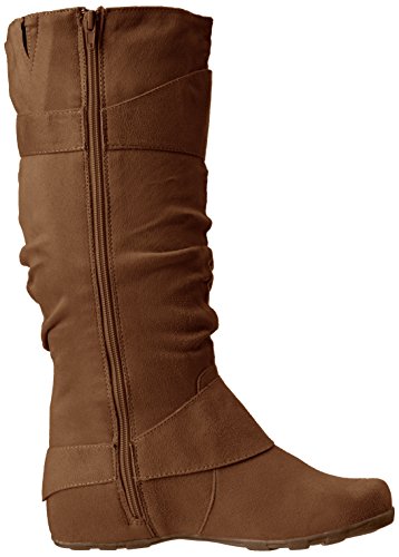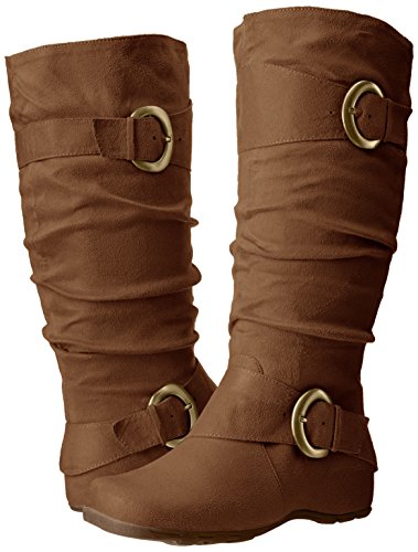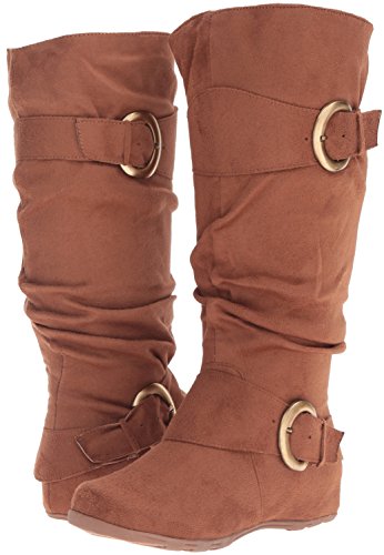 Studio : Brinley Co Publisher : Brinley Co Binding : Apparel Product Description Complement your outfit with these slouchy mid-calf boots by Brinley Co. Buckle and strap details highlight the upper on these round toe boots. Constructed of soft faux suede uppers and rubber soles, man-made lining completes the look of these boots.A slightly padded footbed adds comfort. 0