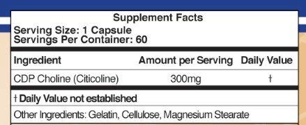 CDP Choline (Citicoline)is a nootropic supplement and is an intermediate in the generation of phosphatidylcholine from choline. Studies have shown supplementation with CDP Choline to improve focus, mental energy, and memory. Supplementation with CDP Choline may also increase dopamine receptor densities.