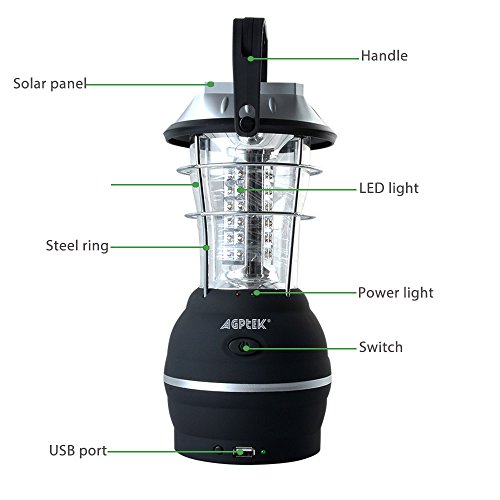 Solar Lantern, AGPtek 5 Mode Hand Crank Dynamo 36 LED Rechargeable Camping Lantern Emergency Light, Ultra Bright LED Lantern - Car Charge - Camping gear for Hiking Emergencies Hurricane Outages