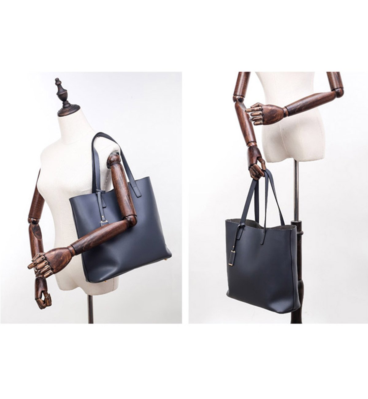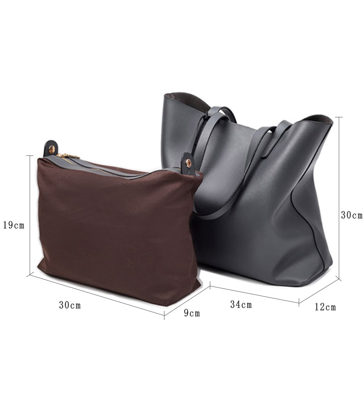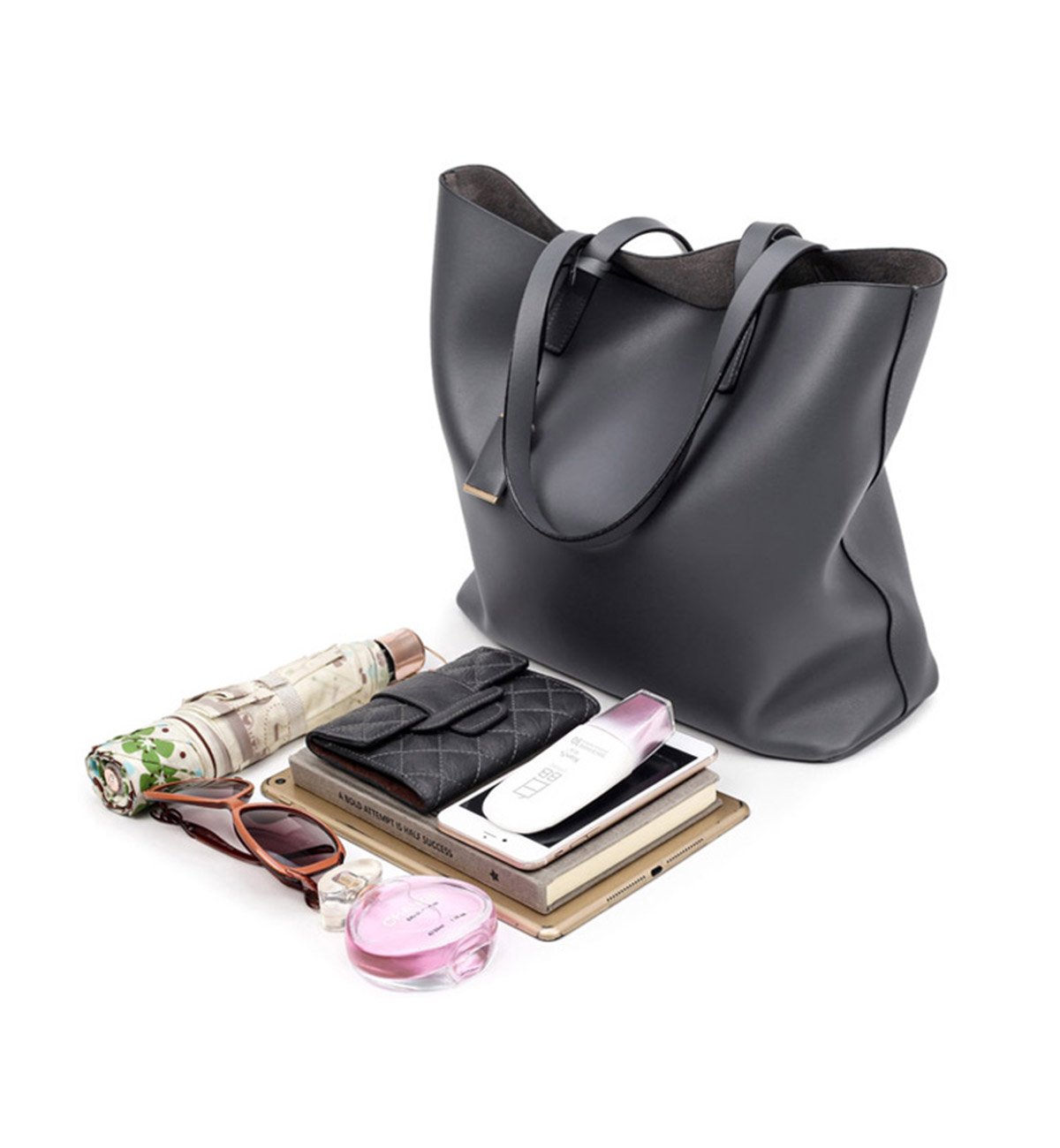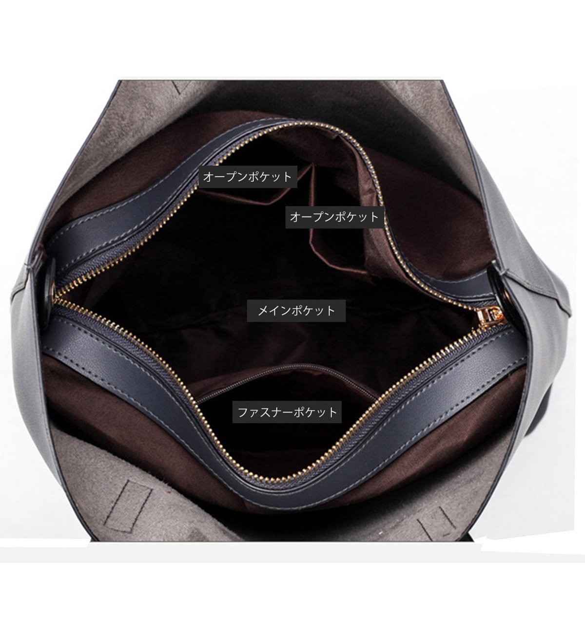Inner bag is attached to elegant boat shape tote / shoulder bag.