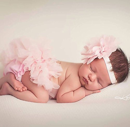 Ruffle Tutu Bloomer & Lace Flower Infant Headband Set, Newborn Baby Girl, Ballet Pink