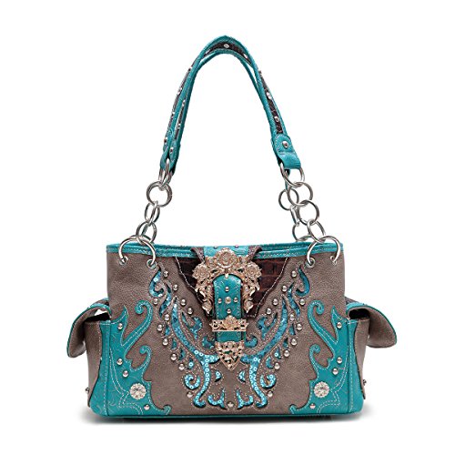 -. Title : Western Handbag Gold Buckle Concealed Carry Satchel Shoulder Bag