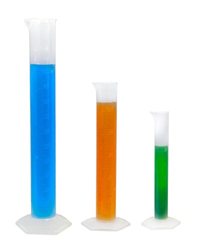 3 Piece Set - Plastic Graduated Cylinder, 10, 50 & 100 ml - PP KeL Scientific KS-2119