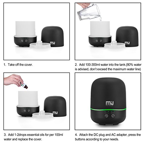 Essential Oil Diffuser –10.15oz Touch Controls Function Aromatherapy Cool Mist Humidifier with - Waterless Auto Shut-off, Timer Settings and Changing Colored LED Lights by MIU COLOR.