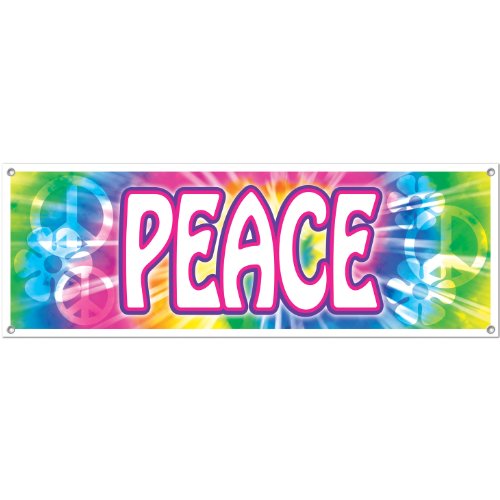 Studio : The Beistle Company Publisher : The Beistle Company Binding : Kitchen Product Description Beistle 57664 Peace Sign Banner. Welcome your guests to the 60's or 70's themed party with this cool peace sign banner! It is made of all-weather material so it can be used indoors or outdoors and has metal grommets in each corner to be used when hanging up. This banner is 21 Inch tall by 5 feet wide. This totally cool sign will be a hit!. 0