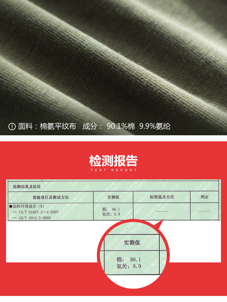 | 主 料:90.1%棉 9.9%氨纶颜 色:军绿 |