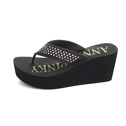 Studded Women's Thong Flip Flop Wedge Platform Sandals