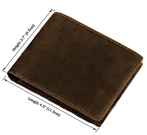 -. Feature : HIGH QUALITY MATERIAL.Made Of Real Cowhide Leather (Inside&Outside). / SAFE AND EFFECTIVE --Customer Tested And Recommended, Protect Your Identity Data - Block RFID Readers From Scanning Your Credit Cards, Debit Cards, Banking Information, Smartcards, RFID Driver's Licenses,And Other RFID Cards. / SIZE: Dimensions:4.5(L)×3.7(H)Inch,Fit For US Dollars.Stand American Wallet.6Xcard Slots, 2Xbill Pocket,2Xmoney Pocket.Fully Lined Bill Compartment. / HANDCRAFTED.Tough Stitching.Hand Made By Professional Artisans.a Beautifully Crafted Wallet That Will Only Get Better With Age! / Great Buy For Yourself Or As a Gift For Gentlemen On Birthday, Anniversary, Father's Day, Thanksgiving, Christmas, And All Other Holidays!