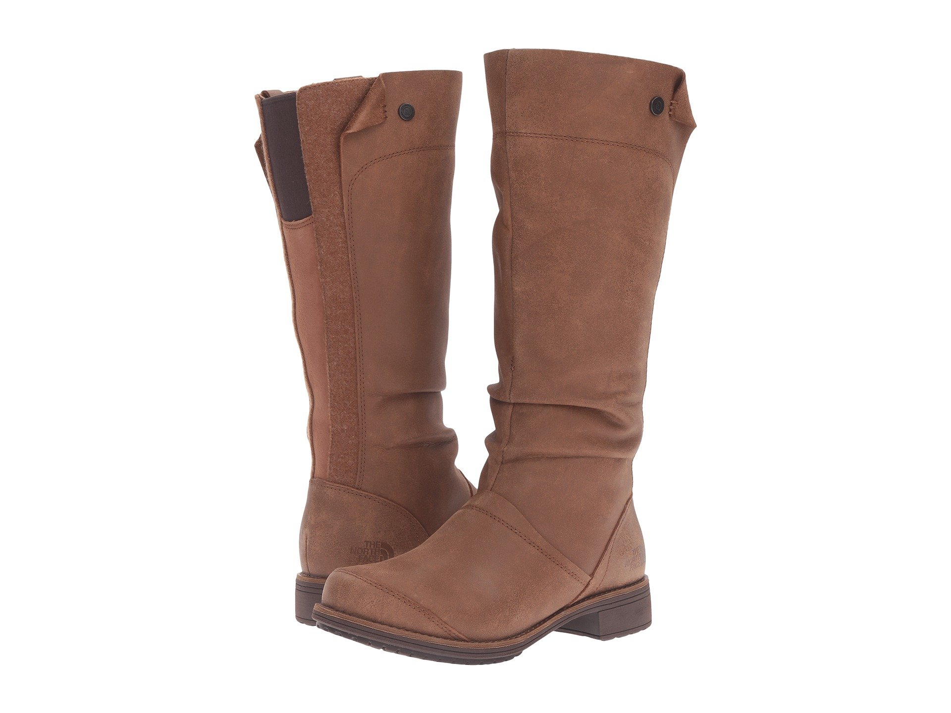 | Product Information SKU: #8711481Please note that this style is either discontinued and/or from a previous season.No matter the weather your look remains flawless in the stylish Bridgeton Tall boot from The North Face?.Seam-sealed, waterproof construction. 200g PrimaLoft? Silver Insulation Eco supplies long-lasting warmth.Pull-on design. Smooth leather and textile upper materials. Back goring panel for an easier entry and exit. Comfortable textile linings. OrthoLite? ReBound footbed offers daylong comfort. Man-made heel.Durable TNF Winter Grip? rubber outsole with temperature-sensitive IcePick? lugs that deliver increased traction. Imported. Product measurements were taken using size 9, width B - Medium. Please note that measurements may vary by size.Measurements: Heel Height: 1 1?4 in Weight: 1 lb 4 oz Circumference: 15 1?2 in Shaft: 14 in |