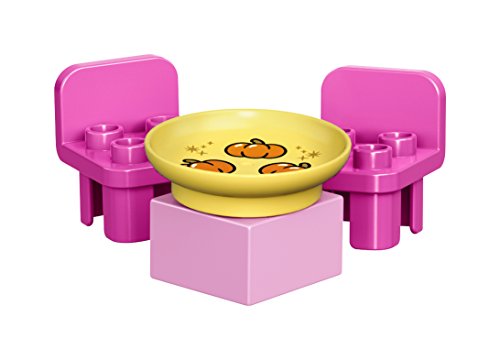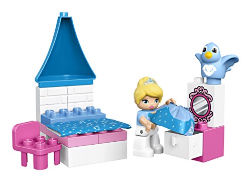 -. Feature : Features an iconic Cinderella castle with blue turrets, dance floor with turning gear wheels, stairs, upstairs room with a bed, and a vanity with opening drawer / Includes two lego DUPLO figures: Cinderella and Prince charming, plus a bird figure / Accessory elements include two chairs, a plate decorated with pumpkins, and a fabric blanket / Includes bricks decorated as a clock, a mirror and windows as story starters / Cinderella's Magical Castle (excluding stairs) measures over 10” (27cm) high, 7” (19cm) wide and 7” (19cm) deep