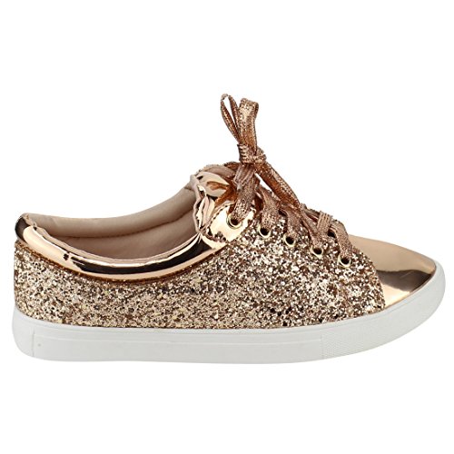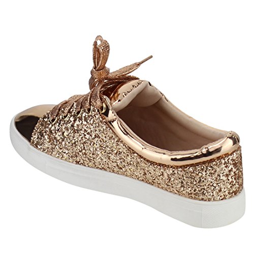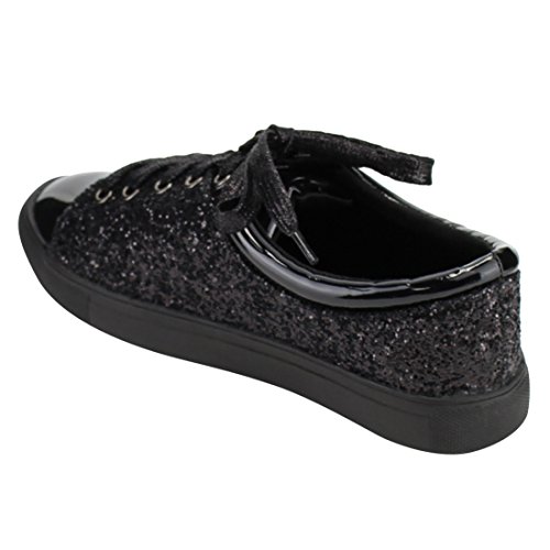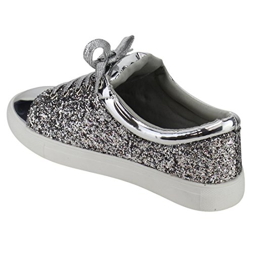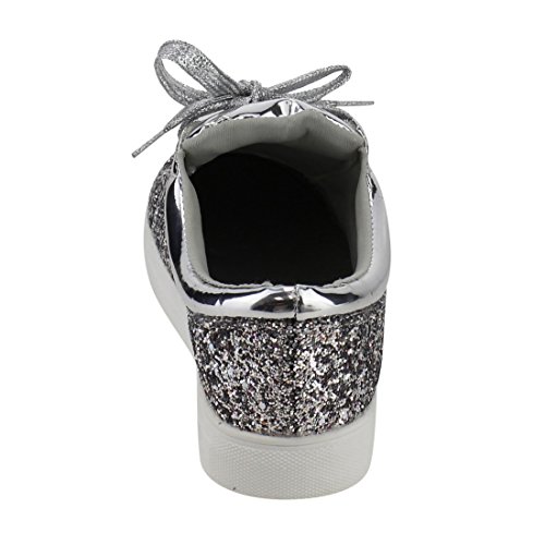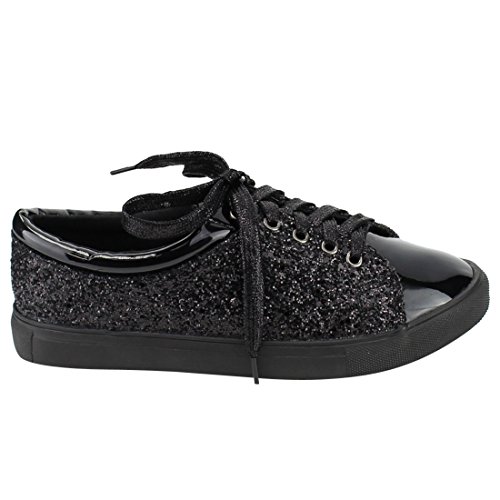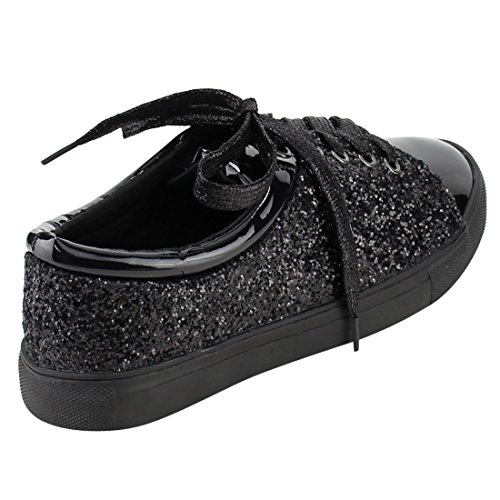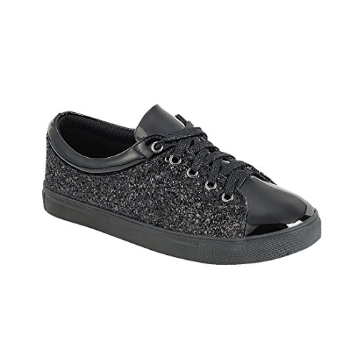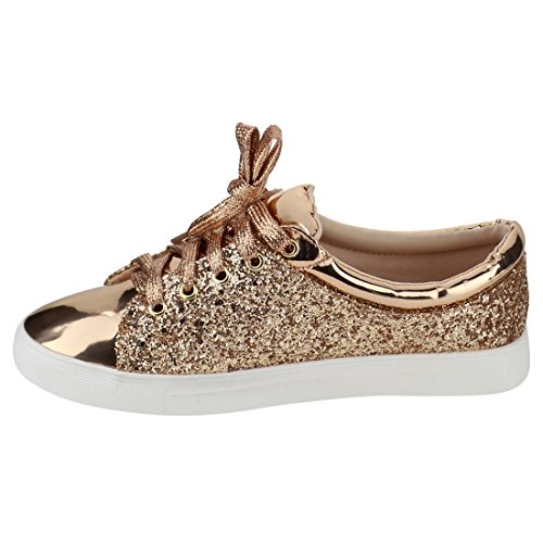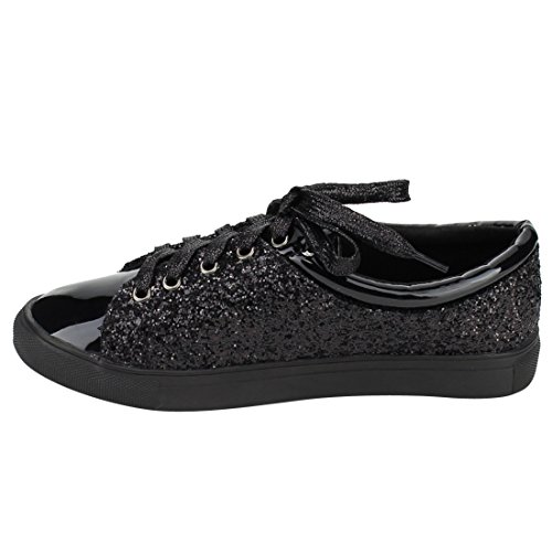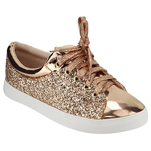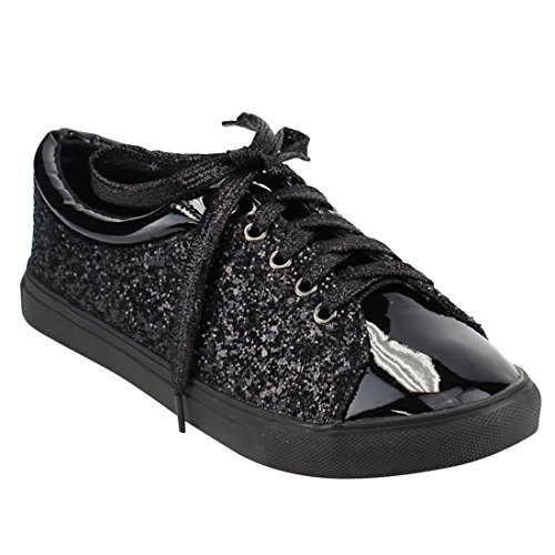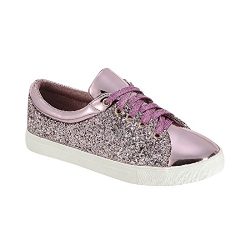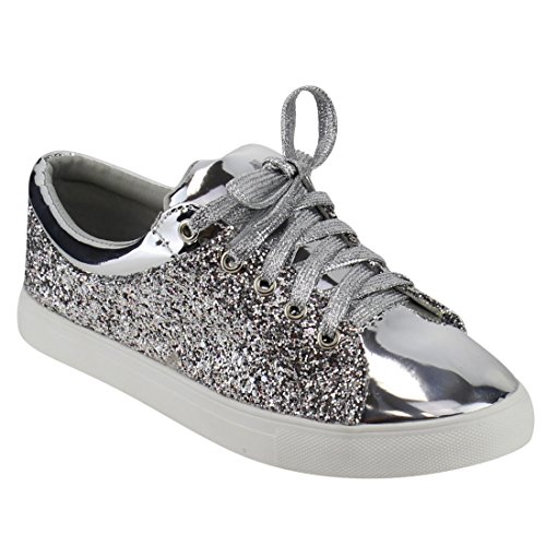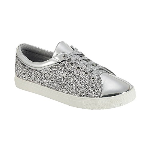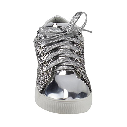 FOREVER FP37 Women's Metallic Glitter Lace Up Street Fashion Sneakers