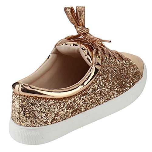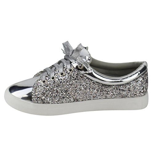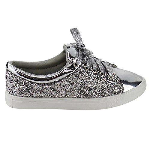 Product Description Look fashion forward in the fashion sneakers. Featuring metallic upper, glittering detail, lace up at vamp, padded collar, and lightly cushioned footbed. 0
