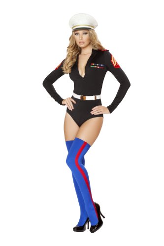 -. Binding : Apparel -. Brand : Roma Costume -. ClothingSize : One Size -. Color : Black -. Department : womens -. Feature : Romper with attached belt / Includes patches, medals and shoulder detail / Hat and stockings available separately / Genuine Roma product -. Genre : Career -. IsAdultProduct : 0 -. Label : Roma Costume -. Manufacturer : Roma Costume -. Model : 4520 -. MPN : RO4520 -. PackageQuantity : 1 -. PartNumber : RO4520 -. ProductGroup : Apparel -. ProductTypeName : ADULT_COSTUME -. Publisher : Roma Costume -. Size : One Size -. Studio : Roma Costume -. Title : Roma Costume Women's 2 piece Sexy Marine Mama