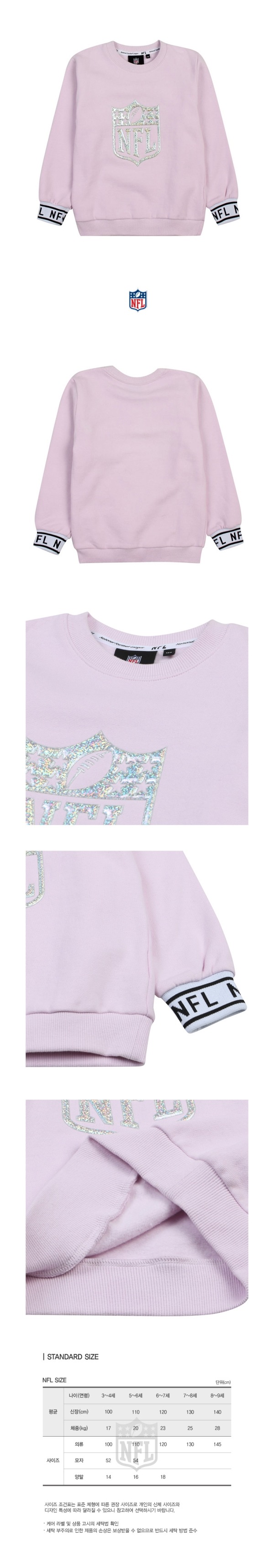 소매 레터링이 포인트인 맨투맨 티셔츠.앞 깔끔한 NFL엠블럼 우레탄 나염이 포인트.속 기모로 따뜻하게 착용 가능.P16과 세트코디가능.