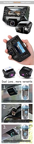 -. Feature : Front lens can rotate 180° vertically and 30° horizontally, a unique feature differentiating S500 from competitors. / Full-HD Video 1920*1080 at 30 fps. Super wide 170° angle camera. Large 2.7" screen, slim design. Come with 32GB micro SD card, ready to use right out of the box. / Rear lens can rotate 180° to cover either a rear view or vehicle interior view, with more versatility. Wide 120° view angle. There is a switch on top of the rear camera. That would flip the image / HD video 1280*720 at 30 fps. Enhanced HDR technology can easy reduce the strong headlight from the car behind. / Hardware Acceleration decoding by Novatek NT96655X. Superior night-vision image sensor by world class f2.4 six-glass lens, and unique WDR (Wide Dynamic Range) video system records superior video with more detailed shadowing and highlights