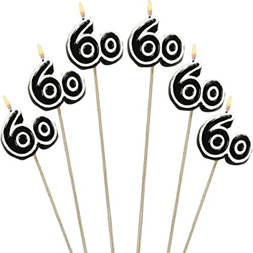 The Party Continuous 60th Birthday Party Molded Candle on a Stick Decoration, Pack of 6, Multi , 9 1/2" Wax, stick