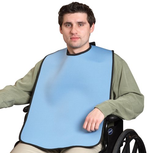 Studio : Maddak, Inc. Publisher : Maddak, Inc. Binding : Misc. Product Description Clothing protector comfortably wraps around the neck and securely fastens with hook-and-loop closure. Measures 18" width by 33" height and is long enough to protect the lap from spills. Constructed from neoprene; durable, flexible and water resistant. Machine wash; air dry. 0